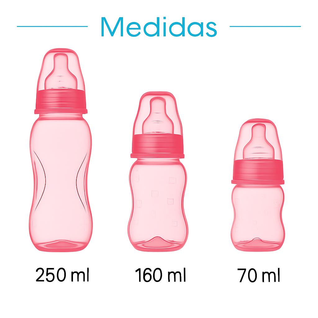 | Conteúdo da embalagem | 3 mamadeiras (250 ml, 160 ml, 70 ml) + tampas + bicos |